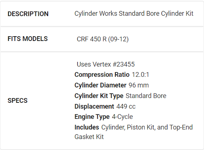 Cilinderkit CRF450R 2009-2012