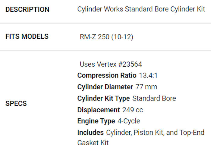 Cilinderkit RMZ250 2010-2012